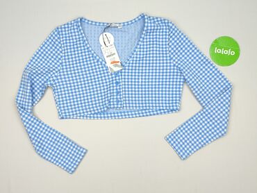 Kardigan damski Stradivarius - Rozmiar: L (EU L / USA L / MEX 30) - Fason: krótki, lekko crop - Dekolt: w serek - Zapięcie: 4 dekoracyjne, biżuteryjne guziki w kolorze srebrnym z motywem kwiatka -...