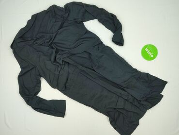 Damski płaszcz kardigan w kolorze czarnym - Fason: bez zapięcia, przewiązywany paskiem w talii - Kołnierz: szeroki, opadający szalowy - Długość: do połowy uda (asymetryczne poły z przodu) - Rękawy...