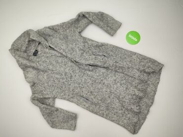 Długi damski kardigan z kapturem, szary melanż. - Fason: otwarty, bez zapięcia, miękko układające się poły, dłuższy tył (lekko zaokrąglony dół). - Rękawy: długie. - Kaptur: obszerny, cienki splot....
