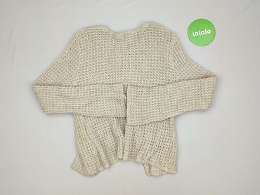 Ażurowy kardigan damski, krótki - Kolor: śmietankowa biel - Fason: krótki kardigan/bolerko - Splot: wyraźny, ażurowy (siateczkowy), przewiewny - Zapięcie: jeden duży guzik z przodu - Rękawy: do ło...