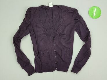 Fioletowy kardigan damski o klasycznym kroju. Posiada dekolt w kształcie litery V i jest zapinany z przodu na białe guziki, które tworzą estetyczny kontrast. Długie rękawy i prosta linia dołu zapew...Stan: