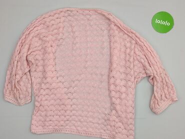Różowy kardigan damski, rozmiar S - Krój: długi, bez zapięcia (otwarty przód) - Kolor: pudrowy róż - Materiał: cienka, przewiewna dzianina o luźnym splocie - Rękawy: długie, zakończone ściągaczami...