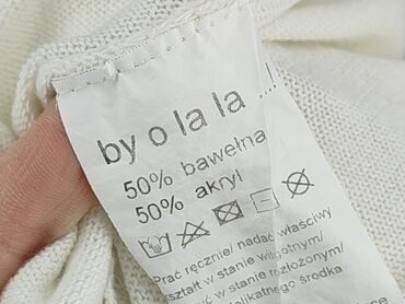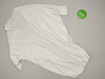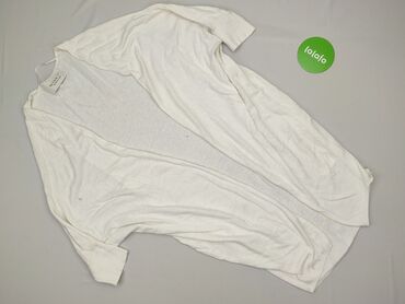 Kardigan damski by o la la…! – biały, długi, otwarty - Krój: długi kardigan bez zapięcia, z szeroką, prążkowaną plisą przy dekolcie i na dole. - Kolor: biały z kontrastowymi granatowo-czerwonymi p...