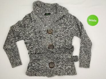 - Fason: kardigan zapinany na trzy duże, dekoracyjne guziki; dodatkowo pasek do przewiązania w talii