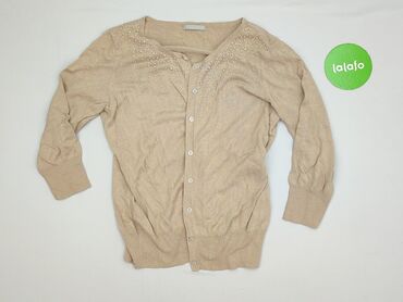 Damski kardigan H&M - Rozmiar: M (EUR M / US M) - Krój: krótki, lekko skrócony; dekolt w serek - Zapięcie: trzy guziki z przodu - Kolor: beżowy/melange - Dzianina prążkowana, elastyczna - Skład ma...