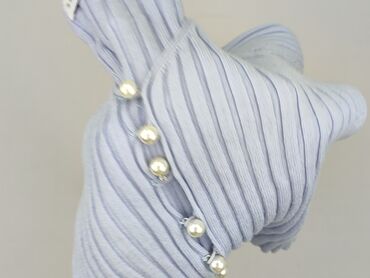 Sweter rozpinany damski marki Cubus w kolorze jasnoniebieskim w białe paski. Sweter ma dekolt w kształcie litery V i jest zapinany na guziki w tym samym odcieniu błękitu. Długie rękawy zakończone s...