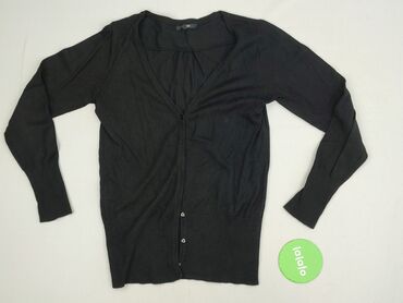 Ten czarny sweter rozpinany damski to wszechstronny dodatek do garderoby. Charakteryzuje się klasycznym dekoltem w kształcie litery V i zapięciem na guziki z przodu. Długie rękawy i prążkowana fakt...Stan: