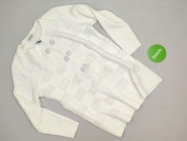 Biała dzianinowa bluzka/kardigan na guziki - Klasyczny, prosty krój z krótkim rękawem - Zapięcie na przodzie na rząd małych białych guzików - Okrągły dekolt z dekoracyjną koronkową lamówką; taki s...