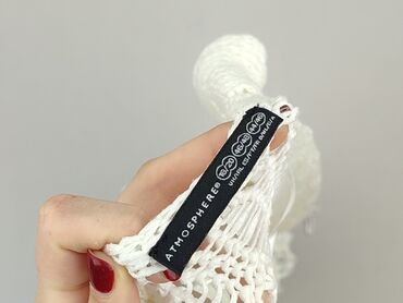 Biały, ażurowy bezrękawnik/kimono z frędzlami Atmosphere.