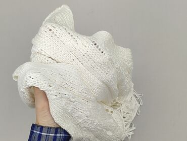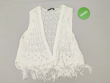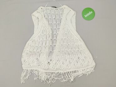 Ażurowy, lekki kardigan damski bez zapięcia. - Kolor: ecru/śmietankowy - Krój: bez rękawów (szerokie otwory na ramiona), otwarty przód - Długość: do bioder (orientacyjnie – dłuższy tył) - Materiał...