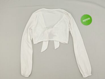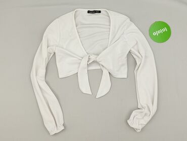 Krótkie białe bolerko/kardigan Bay Trading - Fason: krótki, dopasowany, zapinany na drobne guziki z przodu - Dekolt: głęboki V - Rękawy: do łokcia, zakończone szerokim, elastycznym ściągaczem - Dó...