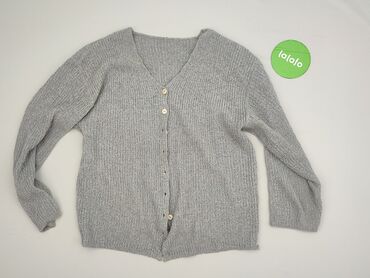 Szary kardigan damski, długi, zapinany na 3 guziki. - Dzianina o grubszym splocie, miękka i ciepła - Wzór w warkocze na przodzie, rękawy i tył w prążek - Głęboki dekolt V z szeroką plisą - Dwie duż...