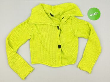 Sweter kardigan damski – musztardowy - Krój: krótki kardigan zapinany na 3 guziki z przodu - Rękaw: długi, raglanowy - Dekolt: szeroki, lekko w kształcie łódki - Wzór/struktura: wyraźny, gęsty spl...