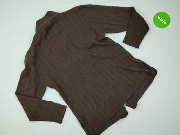 Damski kardigan ażurowy - Fason: rozpinany na guziki, dekolt w serek - Kolor: ciemny brąz - Długość: do bioder - Rękawy: długie, ściągacze na mankietach i u dołu - Wzór: drobne ażurowe dziurki na ...