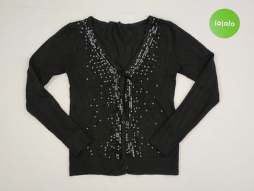 Czarna bluzka/kardigan BONITA, rozmiar M. - Fason: z długim rękawem, głęboki dekolt w kształcie litery V - Ozdoby: dekoracyjna taśma z cekinami i koralikami wzdłuż dekoltu i zapięcia - Zapięcie: n...
