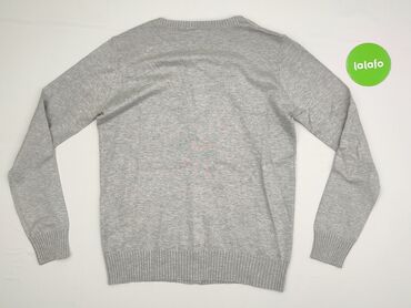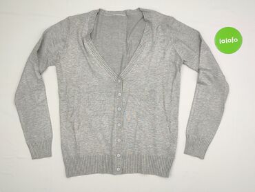 Kardigan damski N. EVERY DAY, rozmiar M/L - Fason: klasyczny kardigan zapinany na guziki - Kolorystyka: cieniowanie szarości od jasnej u góry po ciemny grafit u dołu; w części środkowej poziome pr...