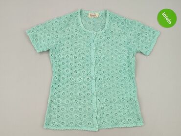 Ażurowy kardigan damski, beżowy. - Krój: długi, otwarty, wiązanie z przodu sznureczkiem - Rękaw: krótki - Wzór: dekoracyjny splot ażurowy na całej powierzchni - Rozmiar z metki: M - Materiał: 100%...