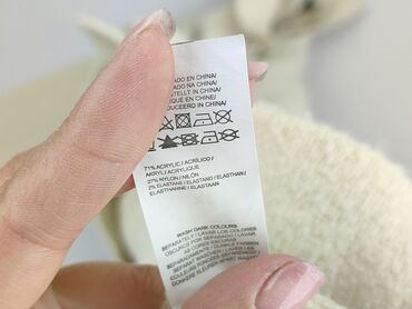 - Materiał z metki: 71% akryl, 27% nylon, 2% elastan – miękki, sprężysty splot o fakturze „bouclé”