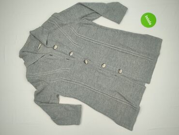 Szary kardigan damski bez zapięcia - Fason: otwarty, miękko układający się przód z szeroką listwą/szalikowym kołnierzem - Rękaw: długi - Długość: do bioder - Kolor: jasnoszary melanż - Materiał: m...