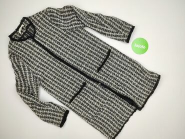 H&M – damska marynarka/kardigan w paski - Model: otwarta marynarka bez zapięcia - Kolor: ecru/kremowy z szarymi, poziomymi paskami - Krój: lekko przedłużany, z kołnierzem rewersowym; rękawy 3/4–7/...