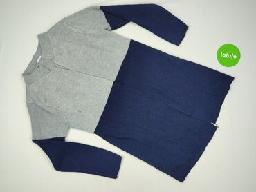 Długi kardigan damski, dzianinowy, w dwóch kolorach: jasnoszary (góra) i granatowy (dół oraz rękawy).