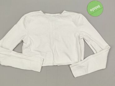 Biały kardigan damski z długim rękawem, zapinany na guziki. Charakteryzuje się ażurowym wzorem, który nadaje mu lekkości. Dół swetra oraz mankiety są wykończone ściągaczem. Kardigan ma okrągły deko...Stan: