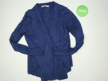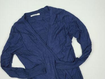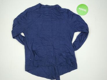 Granatowy kardigan damski Think Positive - Rozmiar z metki: M - Fason: sweter/kardigan zapinany u góry na jeden duży guzik, z miękką listwą przy dekolcie - Rękaw: długi, raglanowy - Dzianina: śred...Stan: