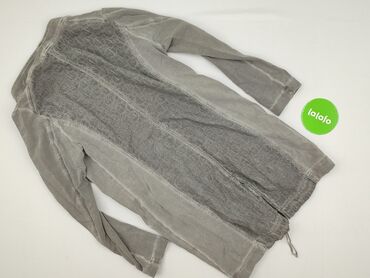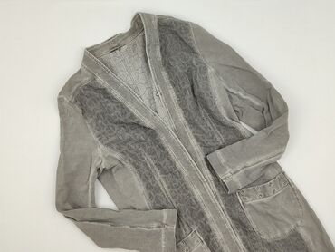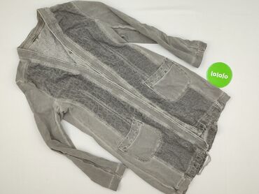Szary kardigan damski, długi, zapinany na 3 guziki. - Dzianina o grubszym splocie, miękka i ciepła - Wzór w warkocze na przodzie, rękawy i tył w prążek - Głęboki dekolt V z szeroką plisą - Dwie duż...