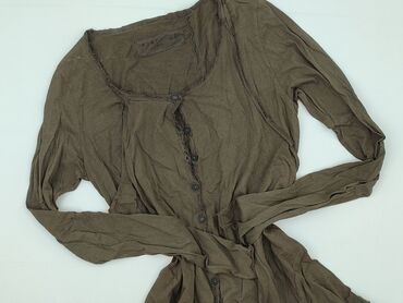 Kardigan damski Teranova - Rozmiar: XS (z metki) - Fason: lekki, bez zapięcia, z miękko układającymi się połami z przodu; dłuższy tył, rękaw długi - Kolor: oliwkowy/khaki melanż - Materiał: 54% po...