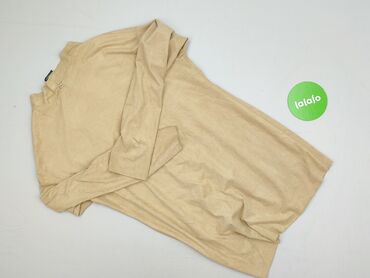 Kardigan damski beżowy - Fason: cienki, zapinany na guziki z przodu - Dekolt: szeroki, zaokrąglony; delikatne marszczenie pod dekoltem - Rękawy: długie - Dół i mankiety: ściągacze prążkowane - Mat...Stan: