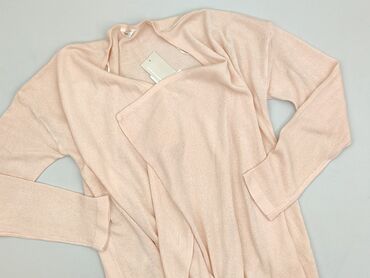 Różowy kardigan damski, rozmiar S - Krój: długi, bez zapięcia (otwarty przód) - Kolor: pudrowy róż - Materiał: cienka, przewiewna dzianina o luźnym splocie - Rękawy: długie, zakończone ściągaczami...