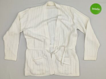 Kardigan damski Mimi, rozmiar M/L. - Kolor: biały/ecru - Krój: długi, swobodny, z dekoltem w serek - Zapięcie: guziki z przodu - Kieszenie: dwie naszywane kieszenie po bokach - Rękawy: długie, zak...