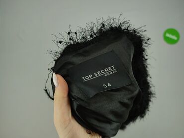 Subtelny połysk, lekko oversize’owy krój, wygodny i przyjemny w noszeniu. Metki widoczne na zdjęciach. Marka: Top Secret Woman. Rozmiar 34. Czarny, długi kardigan o fakturze „futerka” z podszewką.