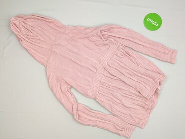 Różowy kardigan damski, rozmiar S - Krój: długi, bez zapięcia (otwarty przód) - Kolor: pudrowy róż - Materiał: cienka, przewiewna dzianina o luźnym splocie - Rękawy: długie, zakończone ściągaczami...