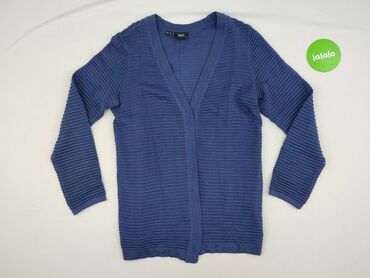 Niebieski kardigan damski marki BPC, wykonany z bawełny. Fason z długimi rękawami zakończonymi ściągaczami. Dekolt okrągły, zapinany na guziki, z drobnym, ażurowym wzorem na ramionach. Rękawy u gór...