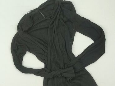 Sinsay – długi kardigan damski - Kolor: czarny - Rozmiar z metki: L - Fason: lekki, bez zapięcia, z kołnierzem/opadającą stójką - Rękawy: długie - Długość: za biodra (longline) - Materiał: 80% wis...