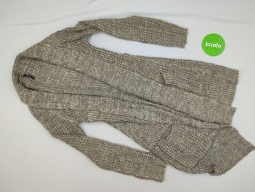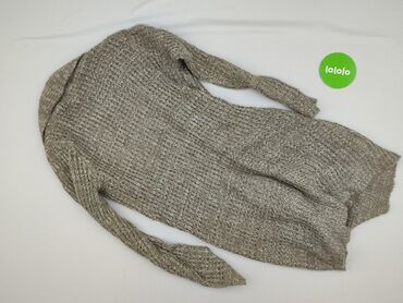 Damski kardigan dzianinowy w kolorze szarym. - Krój: długi, bez zapięcia, przewiązywany paskiem w talii (dołączony pasek). - Rękawy: długie, z dekoracyjnym, wypukłym splotem „łuski”, zakończone sz...Stan: