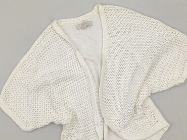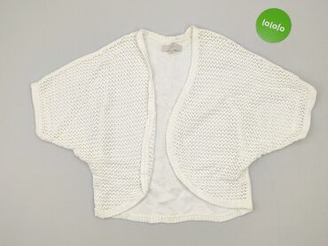 Ażurowy kardigan/bolerko z krótkim rękawem - Marka: BM (metka na zdjęciu) - Rozmiar z metki: M - Skład: 100% bawełna - Kolor: biały Szczegóły: - Ręcznie wyglądający, szydełkowy splot z dekoracyjn...