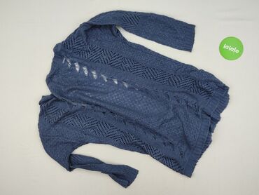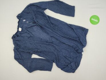 Kardigan damski w paski - Fason: otwarty kardigan bez zapięcia, z miękką, szeroką plisą przy szyi i z przodu - Rękawy: długie - Wzór: drobne, poziome paski w odcieniach granatu i jasnego niebieski...Stan: