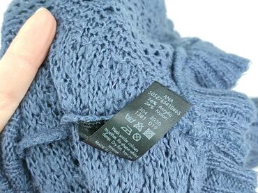 Długi kardigan damski bez zapięcia - Kolor: niebieski melanż - Fason: długi, prosty, bez kołnierza; rękaw długi - Kieszenie: dwie naszywane z przodu (jedna z prążkowaną wstawką) - Materiał (metka)...