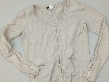 Beżowy kardigan damski, dzianinowy - Krój: dopasowany, prążkowany splot - Zapięcie: jeden duży guzik z przodu - Rękawy: długie - Dekolt: w kształcie litery V - Długość: do bioder/krótszy kardigan ...