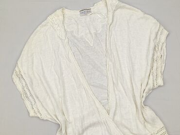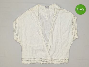 Lekki kardigan damski MARKS & SPENCER - Kolor: jasny beż/neutral - Fason: długi, otwarty, bez zapięcia - Detale: falbanki wzdłuż przodu i na końcach rękawów - Rękaw: długi - Materiał: 55% len, 45%...