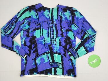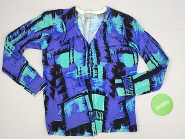 Kardigan damski z długim rękawem, zapinany na guziki. - Kolor: czarny z przodu z panelami w wielobarwny, abstrakcyjny wzór (żółty, fiolet, biel, oliwka). - Krój: dekolt w serek, ściągacz przy dole...