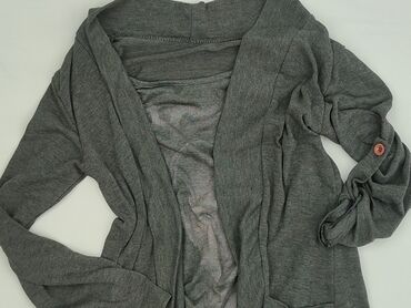 Długi kardigan damski bpc selection - Rozmiar: S - Kolor: jasnoszary melanż - Fason: otwarty, bez zapięcia - Długość: za biodra - Rękaw: długi, wykończony ściągaczem - Detal: dekoracyjny pas z cek...