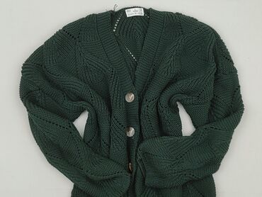 Kardigan damski – ciemnozielony - Krój: klasyczny, zapinany na guziki - Dekolt: w kształcie litery V - Rękawy: długie - Ściągacze: szeroki ściągacz u dołu i na mankietach - Materiał: cienka, dzian...Stan: