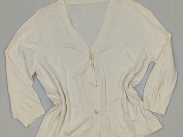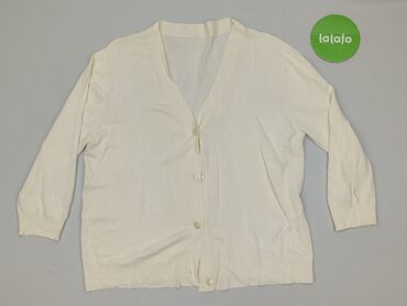 Kardigan damski X’TED - Kolor: ecru/kremowy - Fason: rozpinany bez zapięcia (otwarty), z dekoltem w serek - Dzianina: grubszy splot z dekoracyjnymi warkoczami przy plisie i ażurowymi wstawkami w p...Stan: