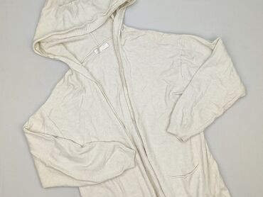 Dzianinowy kardigan z kapturem, beżowo‑kremowy, o grubszym, miękkim splocie. - Krój: długi, otwarty (bez zapięcia), z podkreśloną listwą przy przodzie - Kaptur: obszerny, dwuwarstwowy splot - Kies...