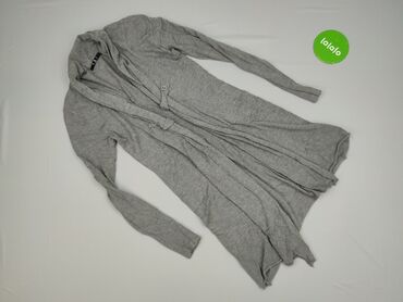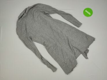 Szary kardigan damski bez zapięcia - Fason: otwarty, miękko układający się przód z szeroką listwą/szalikowym kołnierzem - Rękaw: długi - Długość: do bioder - Kolor: jasnoszary melanż - Materiał: m...