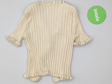 Beżowy prążkowany kardigan/bluzka damska z falbankami