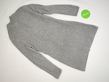 Długi kardigan damski, rozpinany bez zapięcia, w odcieniu melanżowej szarości. - Rozmiar: M (z metki „WOMEN M”) - Krój: prosty, lekko przedłużany, z długim rękawem; bez kaptura, bez guzików/suwaka...
